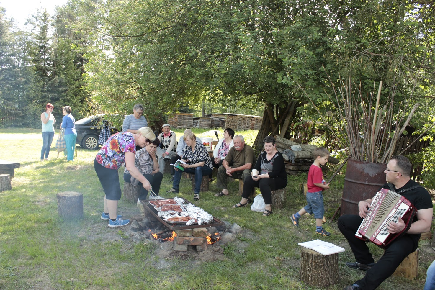 Miłe towarzystwo i kiełbaska z ogniska przy akordeonie.
